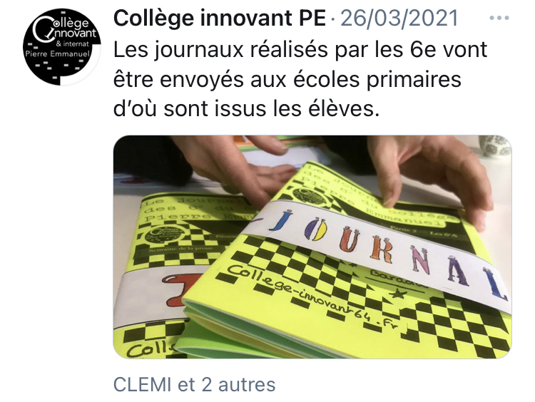 Chaque année, depuis l’ouverture de l’établissement, nous participons à la Semaine de la presse et des médias. Ce projet se déroule habituellement avec les deux classes de quatrième car cela correspond plus particulièrement aux programmes de ce niveau. Mais cette année, grâce à l’appui de la Cité éducative paloise, nous avons pu déployer ce dispositif sur les quatre niveaux du collège. Ainsi, tous les élèves ont participé à cet événement en 2021.