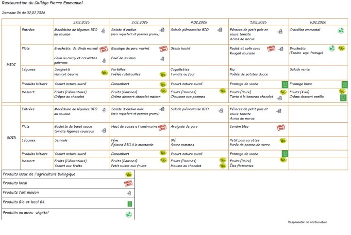 Menu du 02 au 06 février 2026