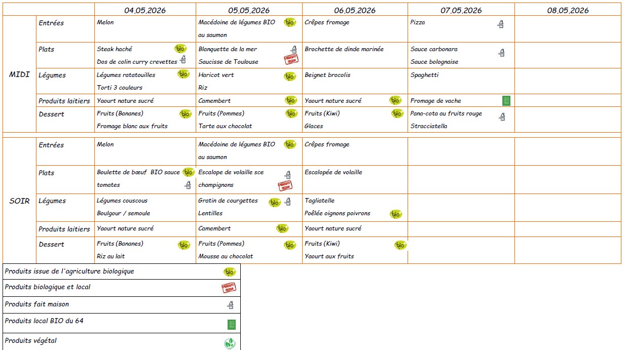 Menu du 4 au 7 mai 2026